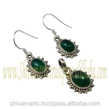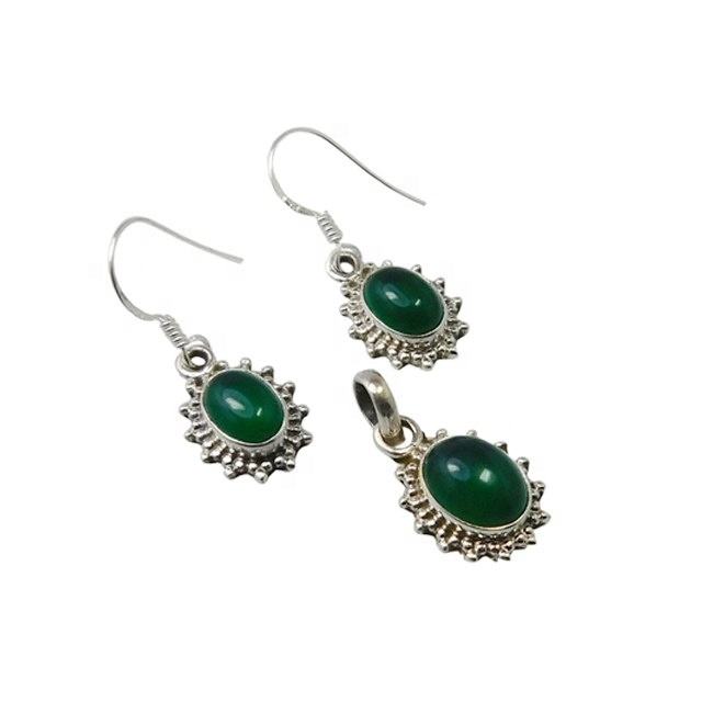 ชุดเครื่องประดับอัญมณีสีเงินสเตอร์ลิง925แบบวินเทจจี้โอนิกซ์สีเขียวแหวนสำหรับเป็นของขวัญในงานเลี้ยงขายส่งเงินแฟชัน