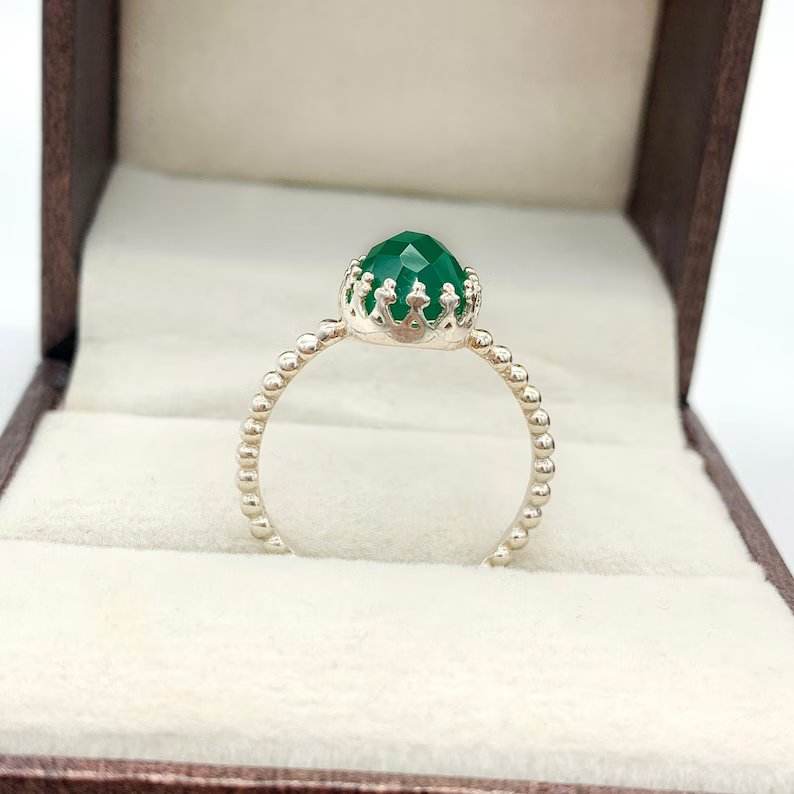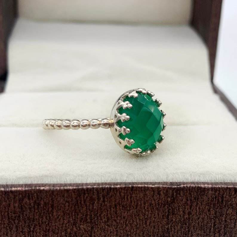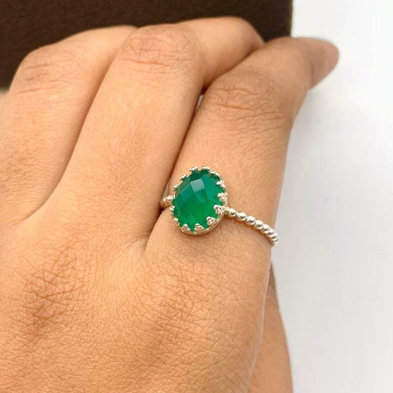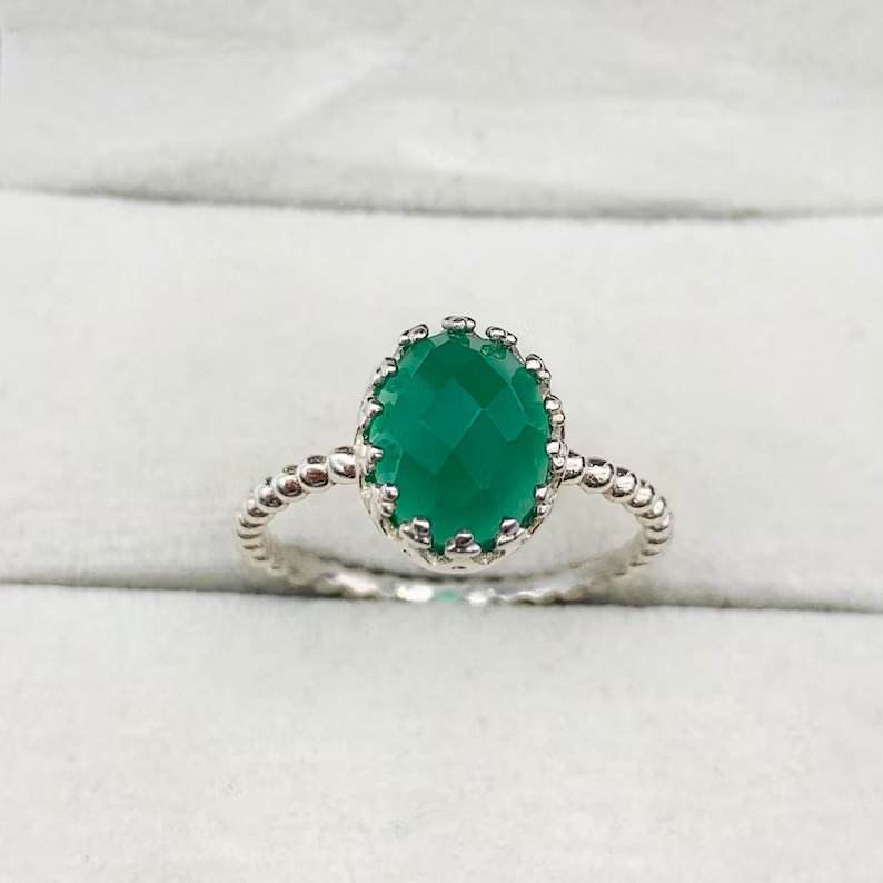 แหวนเงินสเตอร์ลิง925โรแมนติกวินเทจประดับหินโอนิกซ์สีเขียวสำหรับผู้หญิงและเครื่องประดับชั้นดีสำหรับงานแต่งงานและงานปาร์ตี้
