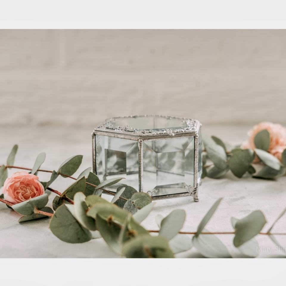 กล่องเก็บเครื่องประดับทรงวินเทจ ดีไซน์ AK งานฝีมือกรอบโลหะ กระจกขอบเอียง ชุบเงินนิกเกิล หรูหรา สง่างาม ปรับแต่งได้