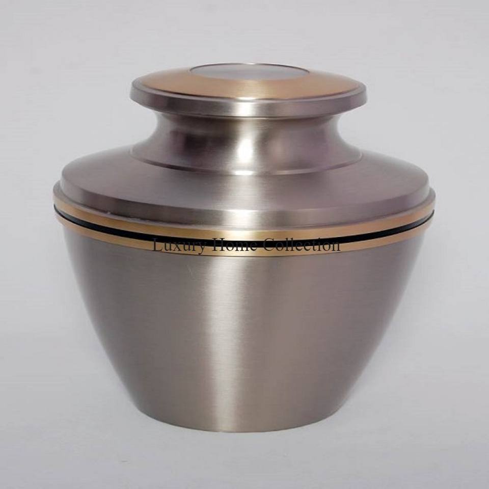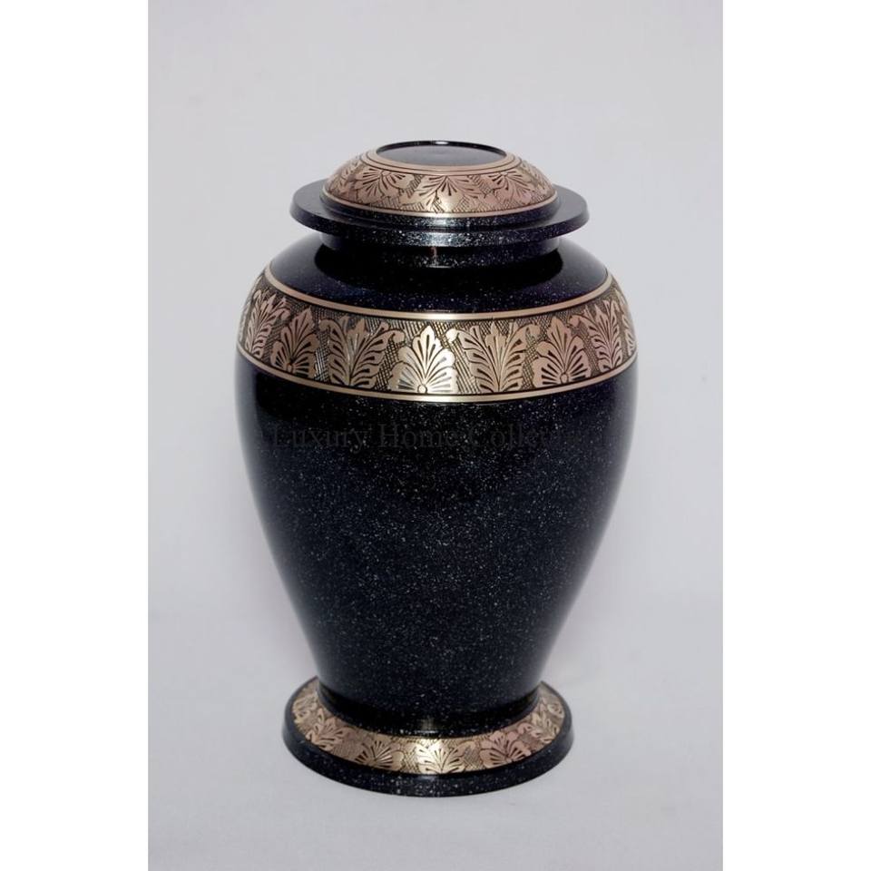 ตลับโกศโลหะสีดำและสีทองดีไซน์วินเทจพร้อมฝาปิดขอบโต๊ะสำหรับงานศพและเถ้าโกศของมนุษย์