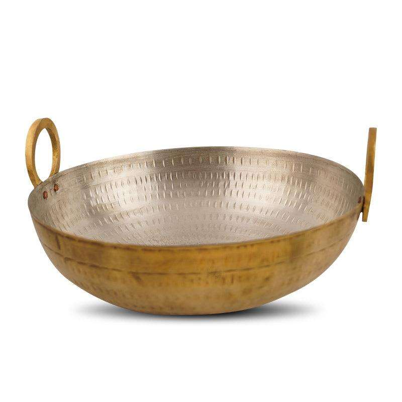 Kadai ทองเหลืองดีไซน์วินเทจสำหรับทำอาหารร้านอาหารที่เสิร์ฟอาหารชุบทอง