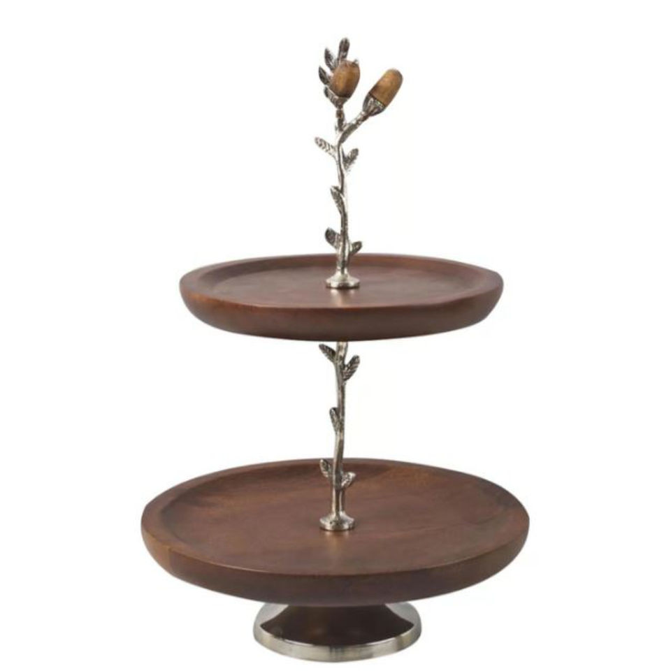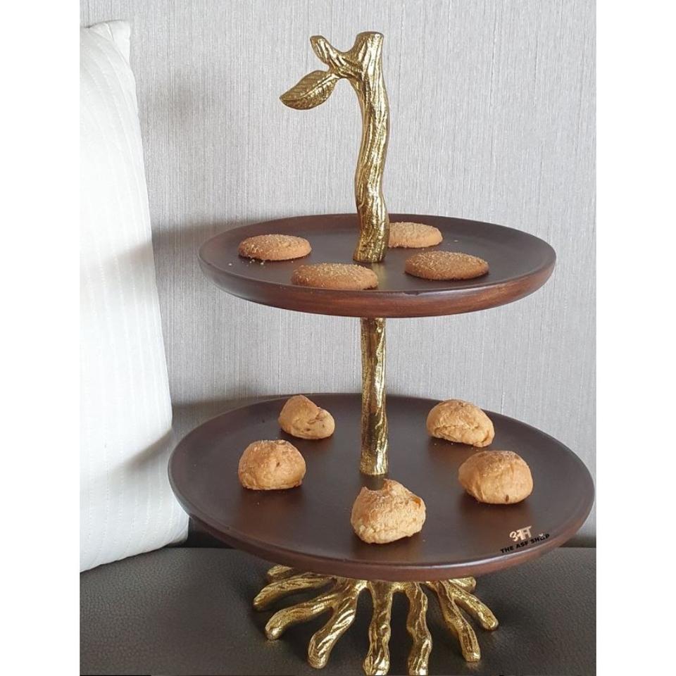 แท่นวางเค้กดีไซน์วินเทจสำหรับใช้ในบ้านถาดใส่เค้กไม้คุณภาพสูงพร้อมขาตั้งโลหะสำหรับงานแต่งงานงานเลี้ยง