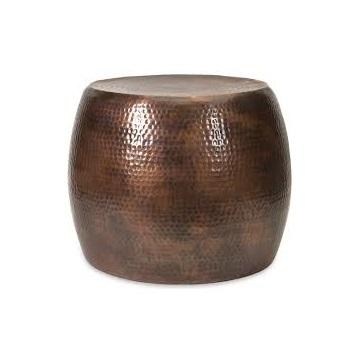 เฟอร์นิเจอร์สไตล์วินเทจสำหรับห้องนั่งเล่นแผ่นโลหะโต๊ะกาแฟแบบดรัมเน้นการตกแต่งด้วยทองสัมฤทธิ์โบราณรูปทรงกลม