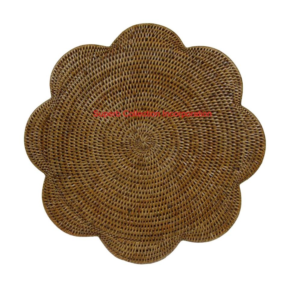 แผ่นรองจานหวายทรงกลมถักด้วยมือดีไซน์แบบวินเทจแผ่นรองจานหวายธรรมชาติสำหรับตกแต่งโต๊ะอาหาร