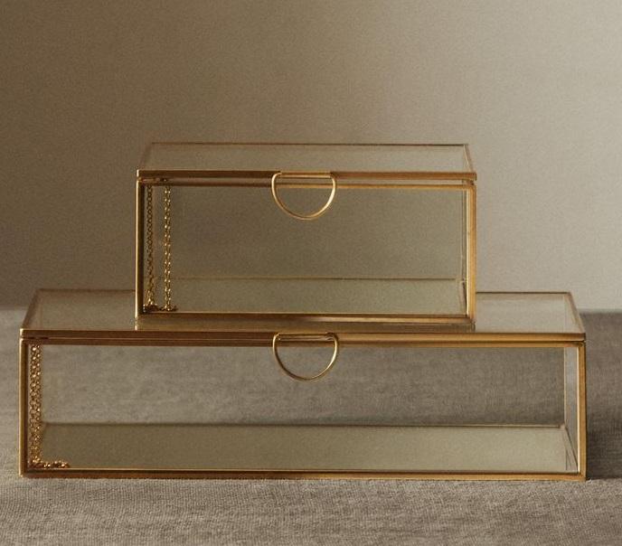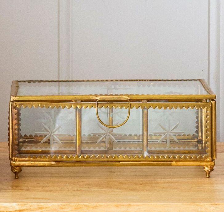 กล่องเก็บเครื่องประดับทำจากแก้วขอบโลหะดีไซน์แบบวินเทจกล่องแก้วนิกเกิลชุบทองกล่องงานฝีมือระดับพรีเมียม