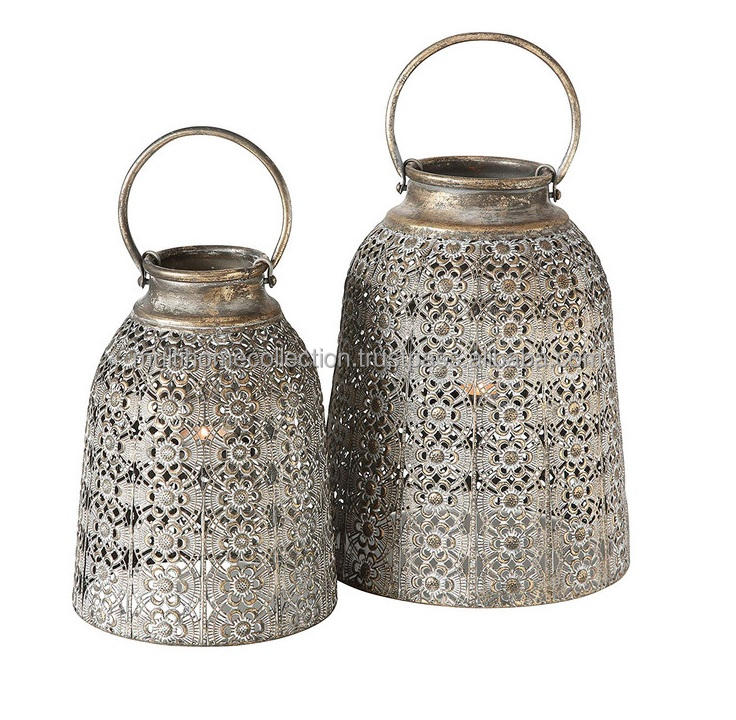 โคมไฟโลหะแนวชนบทสไตล์วินเทจโคมไฟโลหะสำหรับบ้านไร่แบบหยาบโคมไฟเทียนสไตล์โมร็อกโก