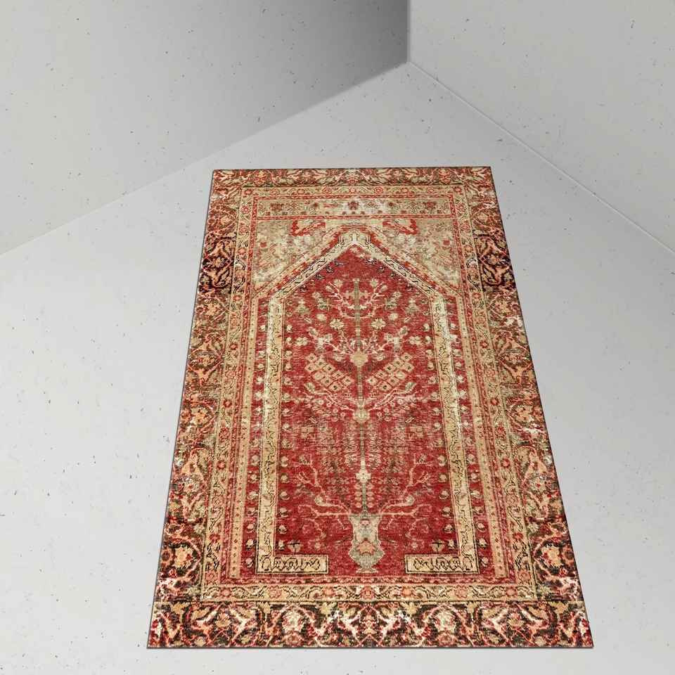 พรมลายดอกไม้สีแดง ดีไซน์วินเทจ พรมพิมพ์ลาย พรมขนนุ่ม