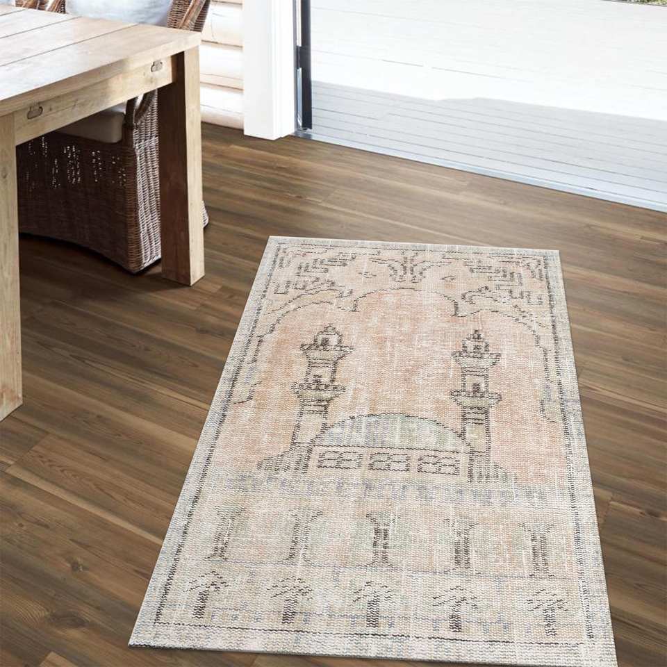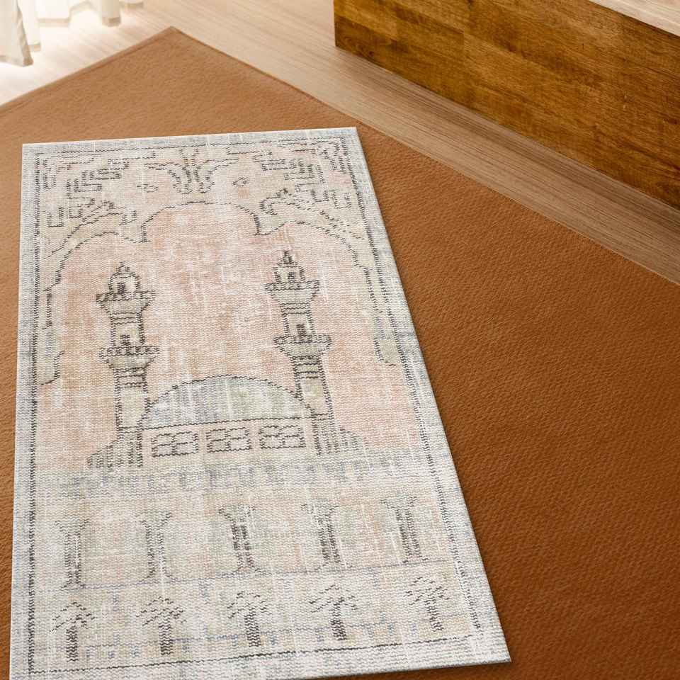 พรมลายวินเทจ, พรมสีเบจ, พรมสีน้ำตาล, พรมมุสลิม, พรมของขวัญรอมฎอน, พรมเนื้อนุ่มแบบไม่ทอ