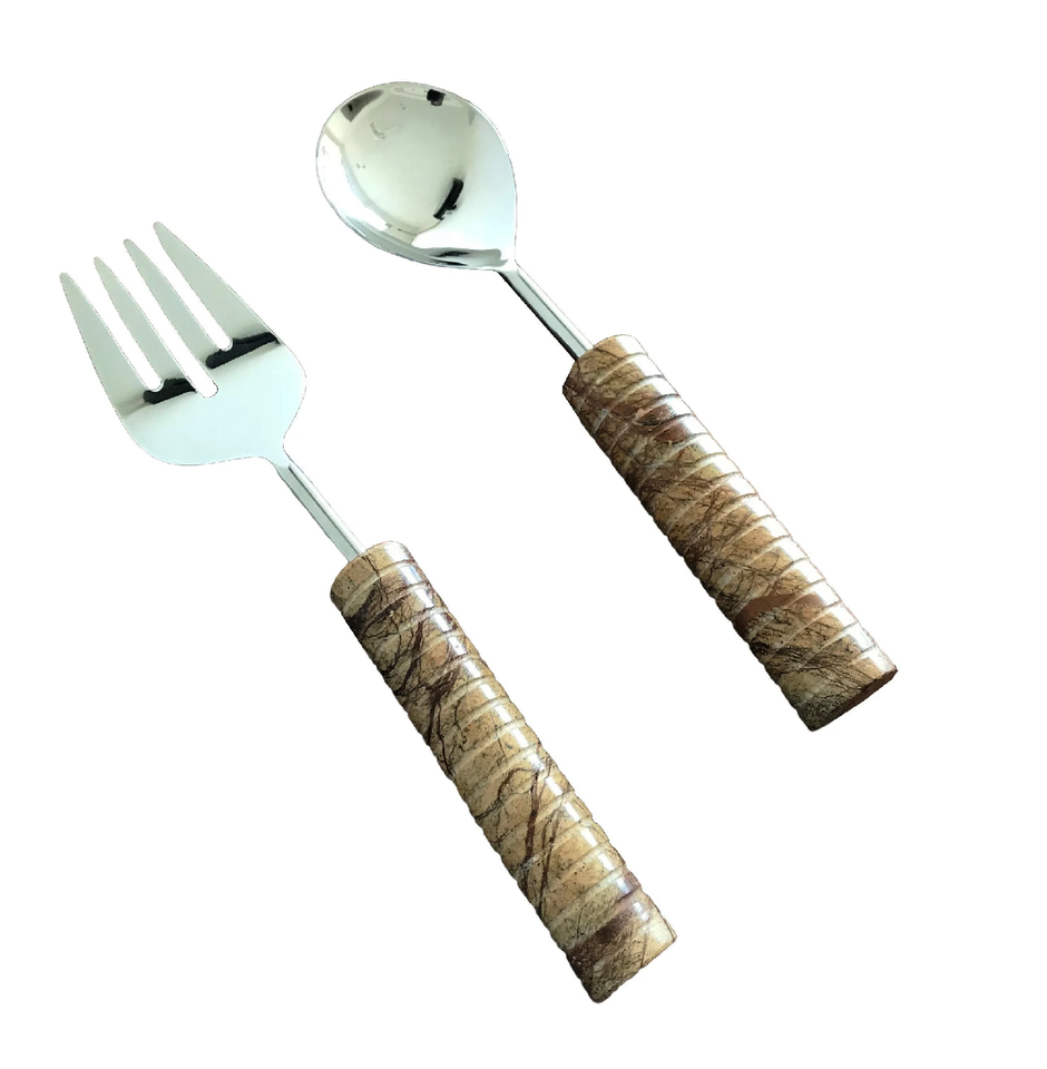 ช้อนสลัดอาหารค่ำโรงแรมทำจากสเตนเลสมีด้ามจับแตรดีไซน์ใหม่ดีไซน์วินเทจ