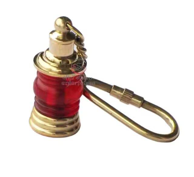 พวงกุญแจโคมไฟสีแดงของดีไซเนอร์สไตล์วินเทจทำจากทองเหลืองใช้เป็นของขวัญของสะสมวัสดุโลหะ