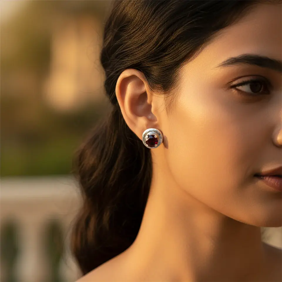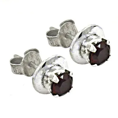 "Vintage Diamond Cut Garnet Stud Earrings for Women in White and Yellow Gold Plating"