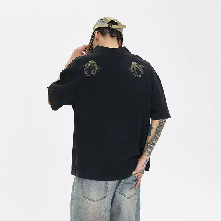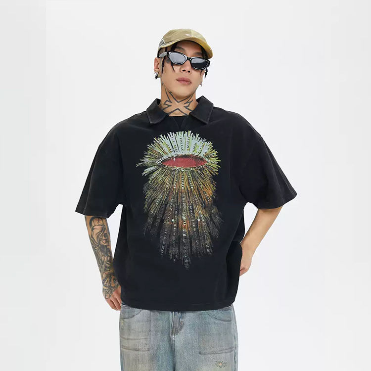 เสื้อยืดผู้ชายทรงโอเวอร์ไซส์ ผ้าถักลายวินเทจฟอกสีแบบแอซิดวอช 100% ผ้าฝ้าย ระบายอากาศได้ดี พิมพ์ลายสกรีน แขนสั้น