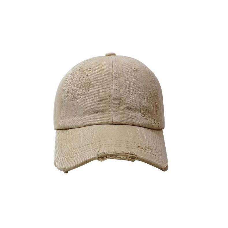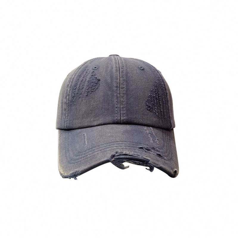 หมวกยีนส์วินเทจทรงเตี้ย ขอบหมวกดิ้นๆ ทรงไม่แข็ง ผ้าฝ้าย หมวกทรงแด๊ด วัสดุเดนิมฟอก หมวกเบสบอลขาดๆ สำหรับผู้หญิงและผู้ชาย