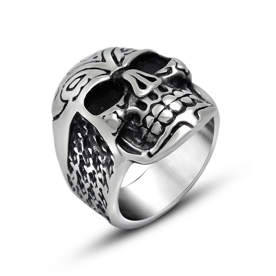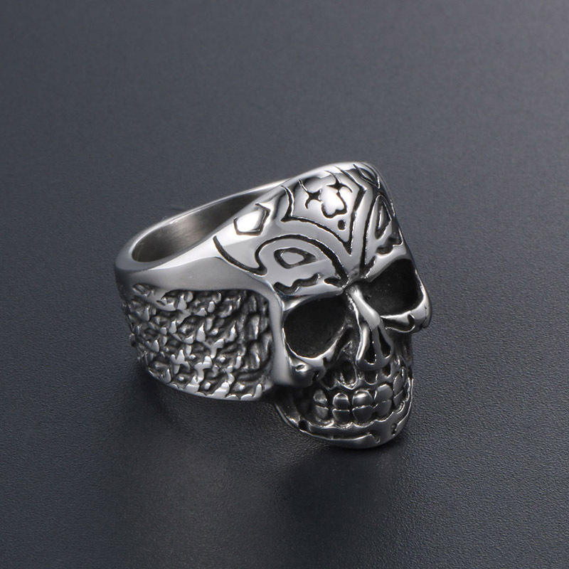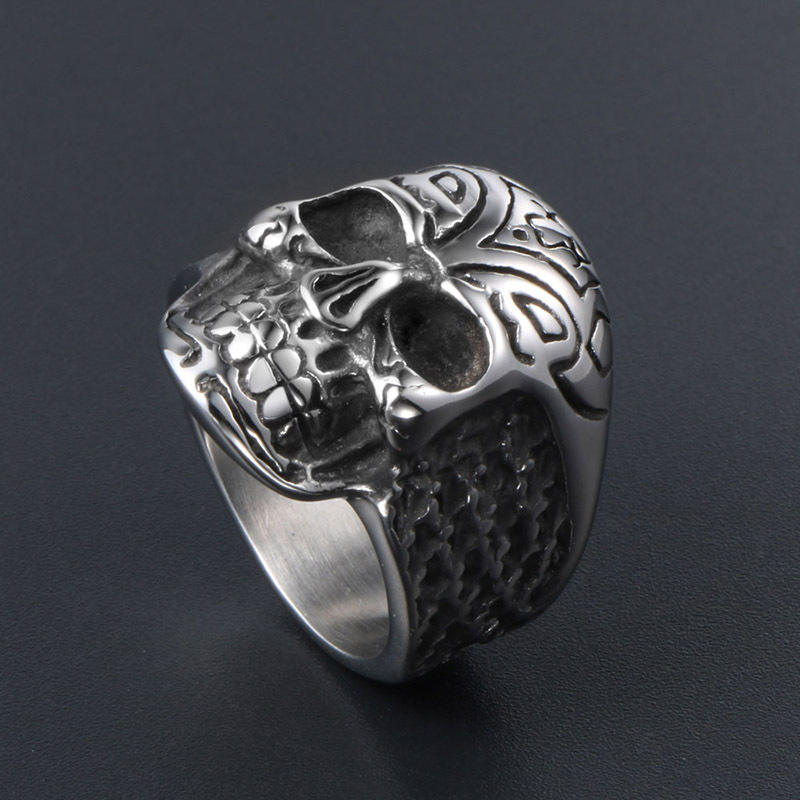 แหวนเหล็กไทเทเนียมลายหัวกะโหลกสไตล์วินเทจ แหวนนิ้วโป้งผู้ชาย ดีไซน์โครงกระดูกเรขาคณิต SA541