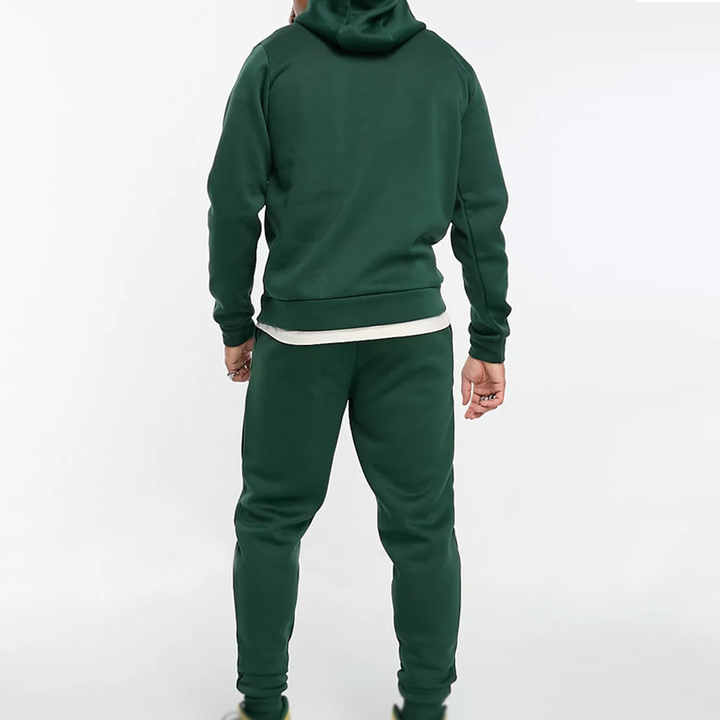 ชุดวอร์มผู้ชายสไตล์วินเทจ ลุคสตรีทแวร์ สีดำฟอกกรด ซิปเต็มตัว มีฮู้ด กางเกงขายาวทรงบาน