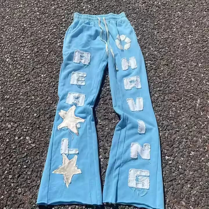 กางเกงวิ่งขนแกะแนวสตรีทแวร์ทรงตรงแบบวินเทจเหมาะสำหรับใส่วิ่งปักลายกราฟิกซักได้ตามต้องการ