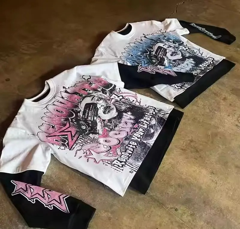 เสื้อยืดผ้าฝ้ายหนาแบบวินเทจสำหรับผู้ชายเสื้อยืดพิมพ์โลโก้สกรีนลายแบบกำหนดเองเสื้อยืดพลอยเทียมแขนยาวสองชั้น