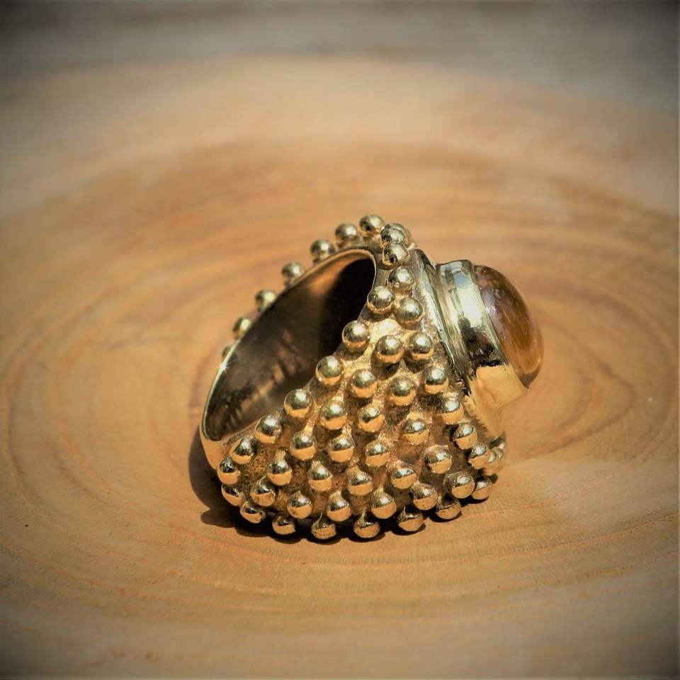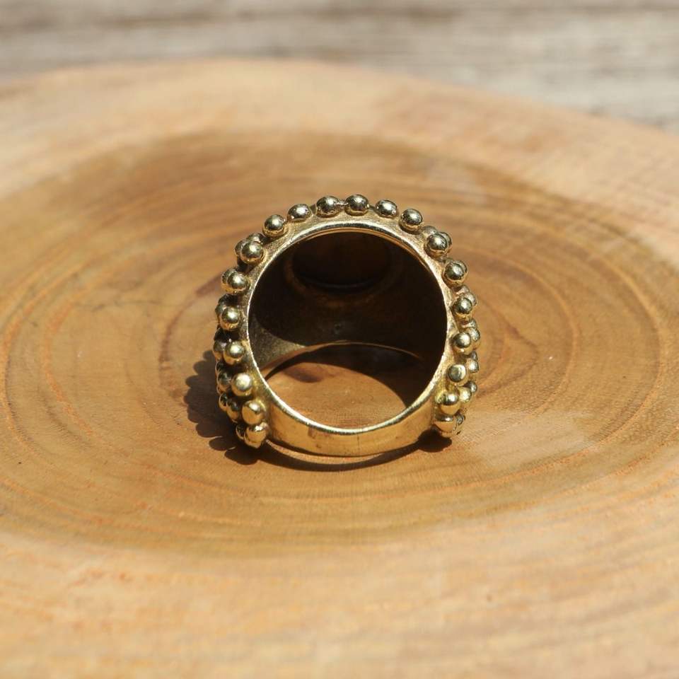 แหวนทรงโดมวินเทจประดับพลอยสำหรับผู้หญิง แหวนทองเหลืองทำมือประดับลูกปัดและพลอยธรรมชาติ เครื่องประดับแฟชั่นขายส่ง