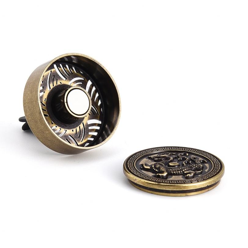 ที่หนีบปรับอากาศรูปมังกรวินเทจขนาดเล็กทรงกลมสีทองสำหรับรถยนต์ กลิ่นหอมปรับอากาศในรถยนต์