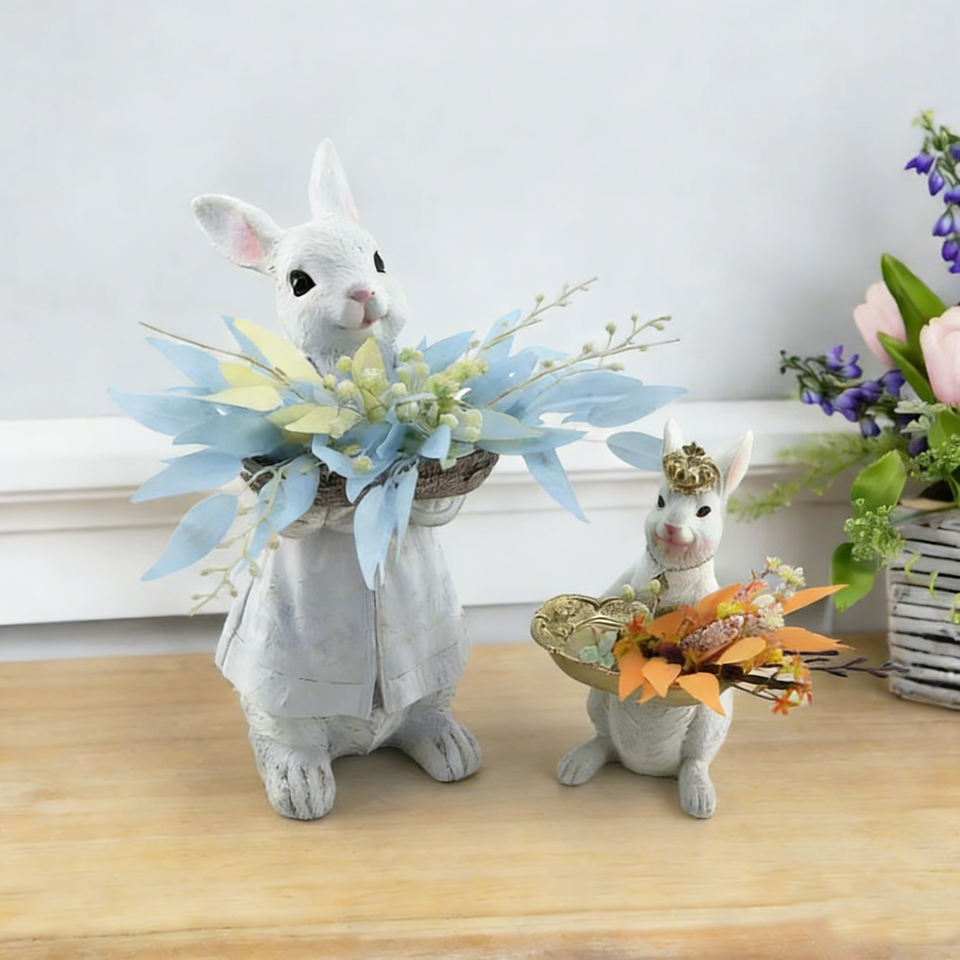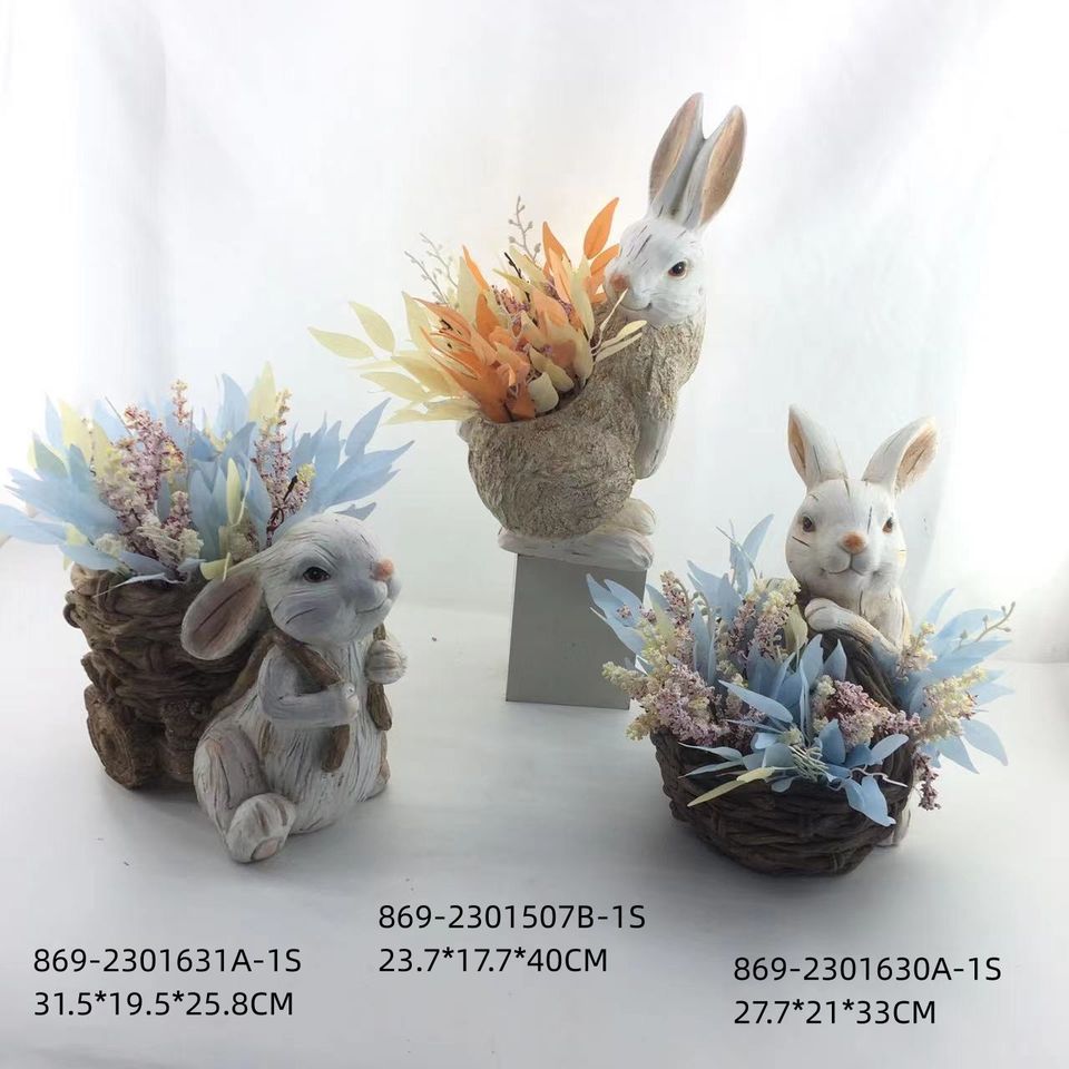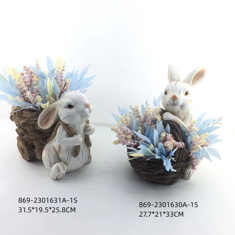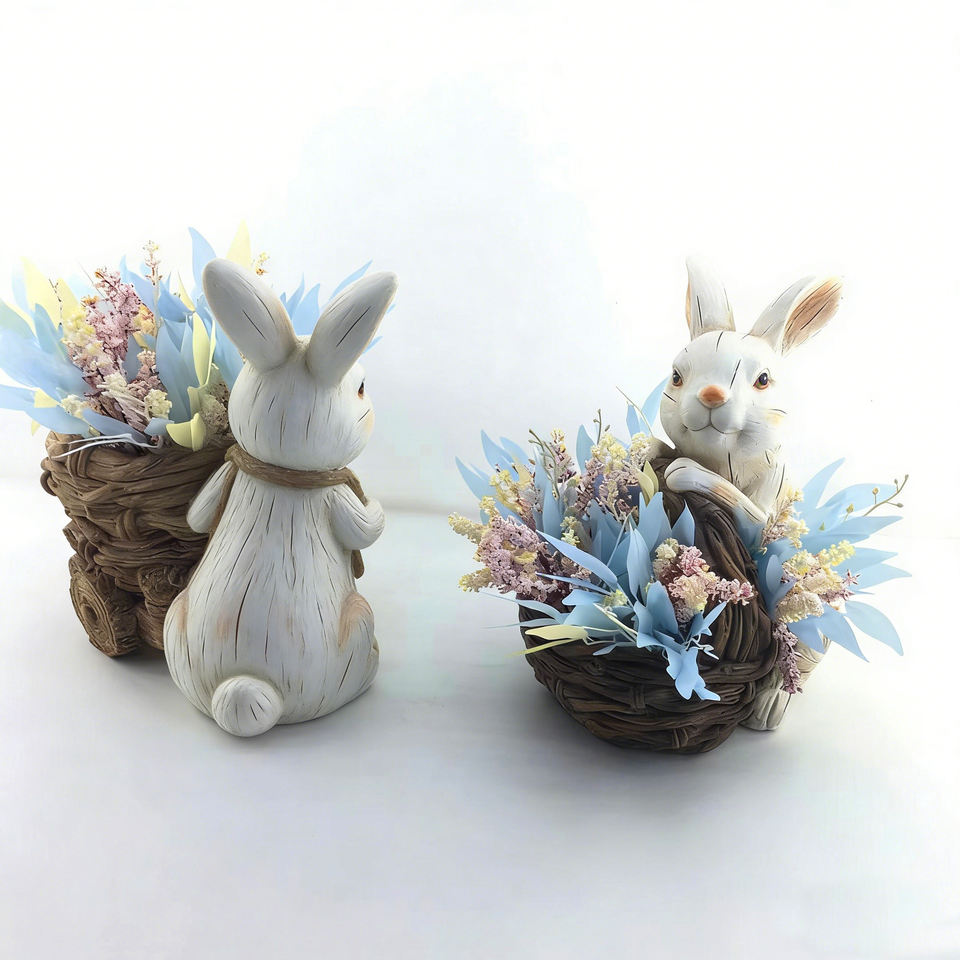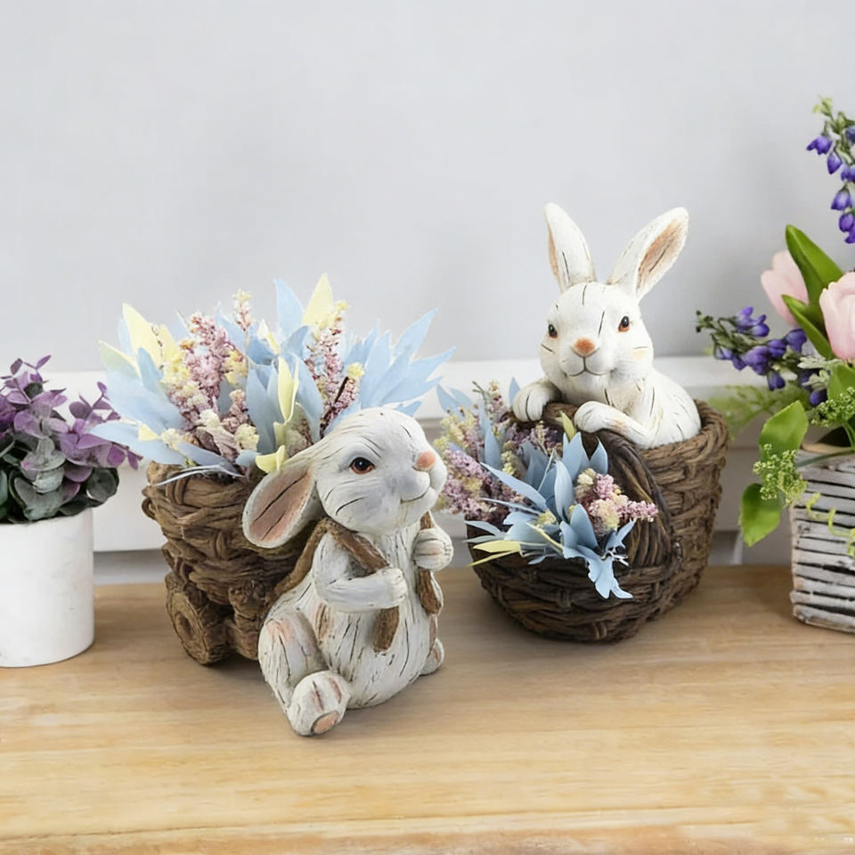 กระถางต้นไม้ลายกระต่ายอีสเตอร์สไตล์วินเทจ พร้อมดอกไม้แห้ง ของตกแต่งบ้านสไตล์เรียบง่าย ของขวัญอีสเตอร์ ของประดับตกแต่งสไตล์ฟาร์มเฮาส์