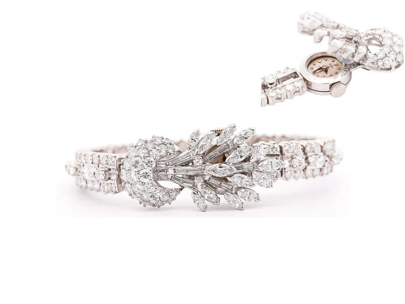 สร้อยข้อมือวินเทจสีน้ำตาลอ่อน11กะรัตประดับเพชรและแพลทินัมแบบแมนนวล925เครื่องประดับชุบเงินแท้