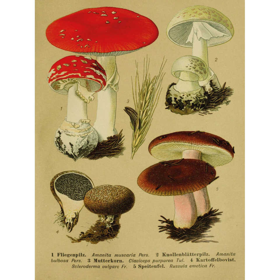 Vintage Educational Fly Agaric Art Print Beautiful Wall Decor Poster