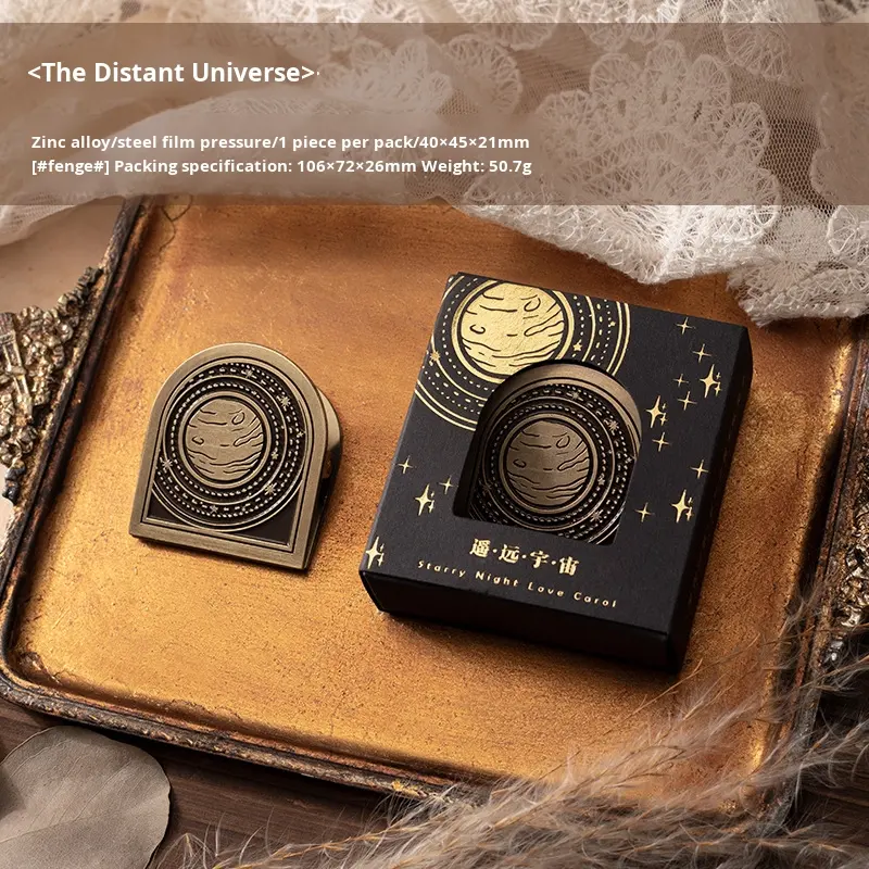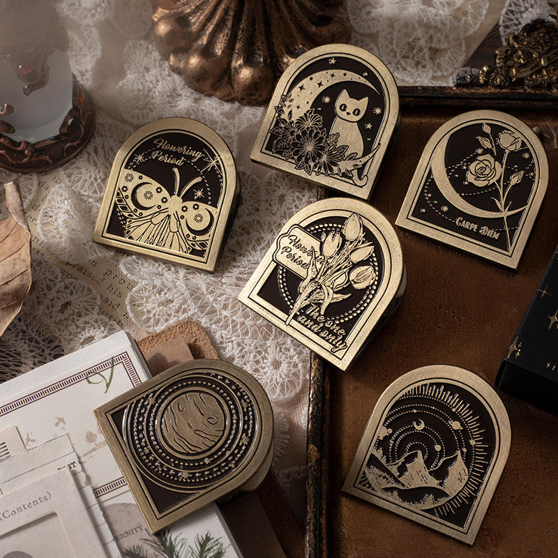 คลิปตกแต่งสมุดบันทึกวินเทจลายโลหะสตาร์รี่ไนท์สุดหรู จากซีรีส์เพลงรัก 6 แบบ พร้อมลวดลายแกะสลัก