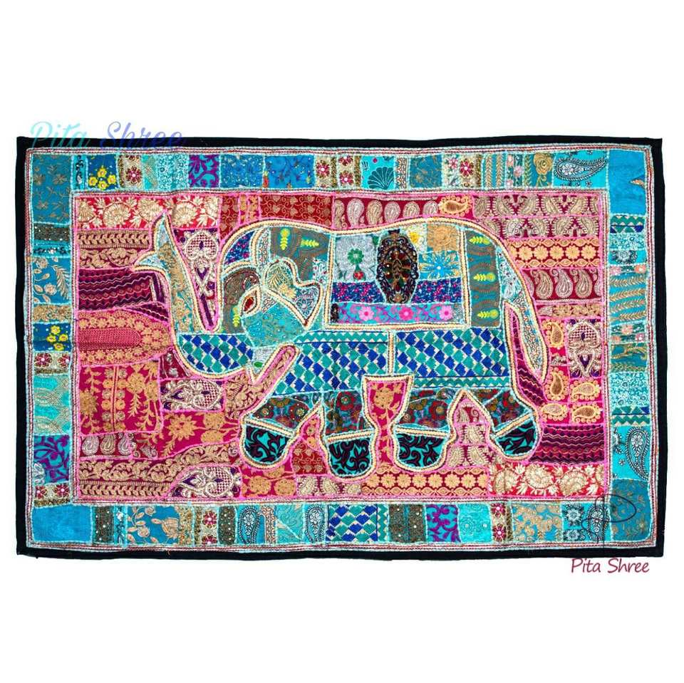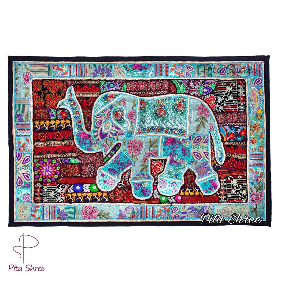 ผ้าปักลายช้างวินเทจ ผ้าฝ้ายสไตล์โบฮีเมียน ตกแต่งผนังด้วยลูกปัด งานปะติดลายธรรมชาติ เหมาะสำหรับตกแต่งบ้านในวันเกิด/งานแต่งงาน