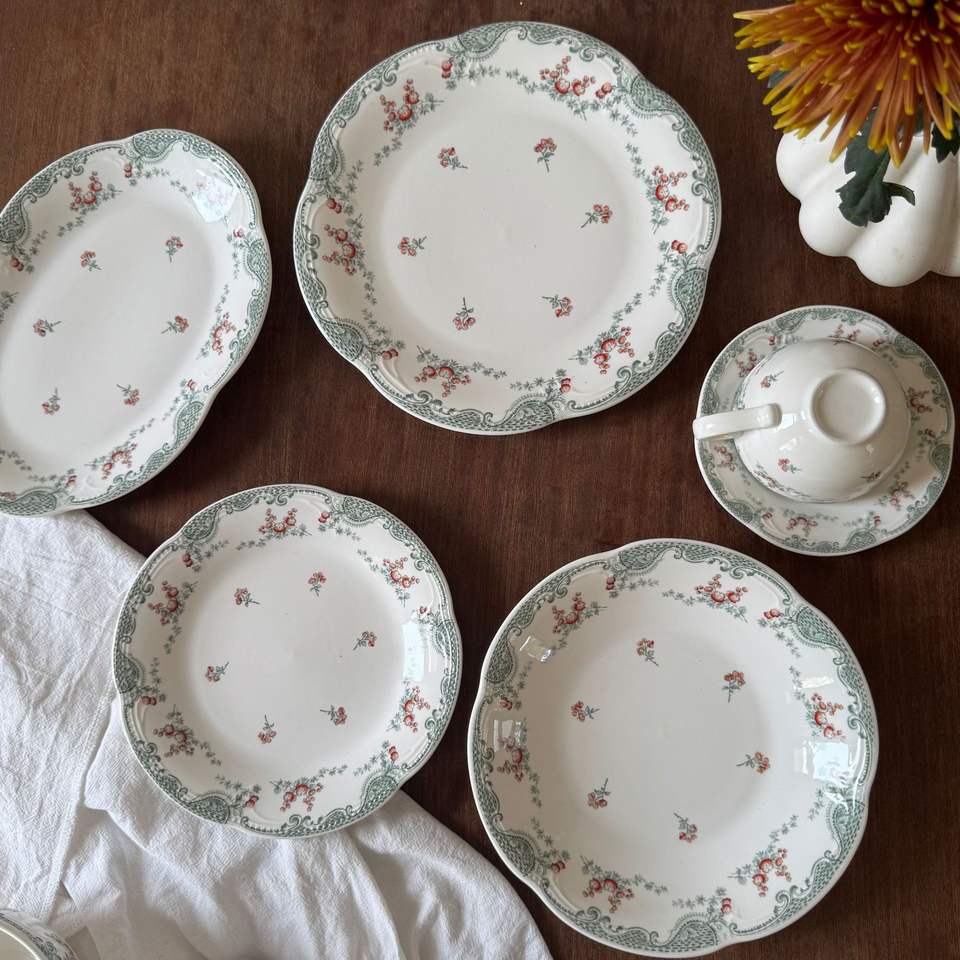ชุดรับประทานอาหารลายดอกไม้ลูกไม้นูนแนววินเทจชุดชามพอร์ซเลนชุดจานและจานอาหารค่ำ