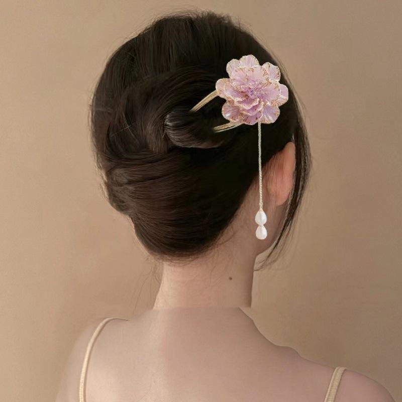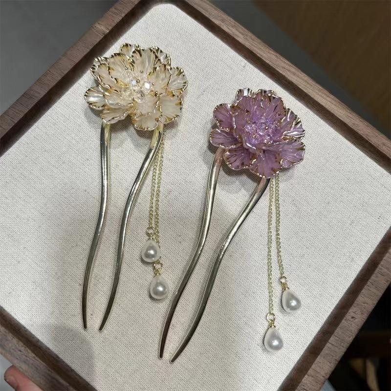กิ๊บติดผมมุกดอกโบตั๋นเคลือบสีแบบวินเทจ กิ๊บติดผมพู่มุกสไตล์คลาสสิกสำหรับผู้หญิง เครื่องประดับผมสไตล์เรโทร