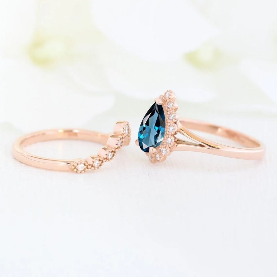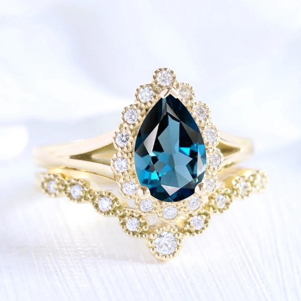 แหวนแต่งงานเงินแท้ 925 ประดับพลอยบลูโทแพซ ดีไซน์วินเทจสำหรับผู้หญิง