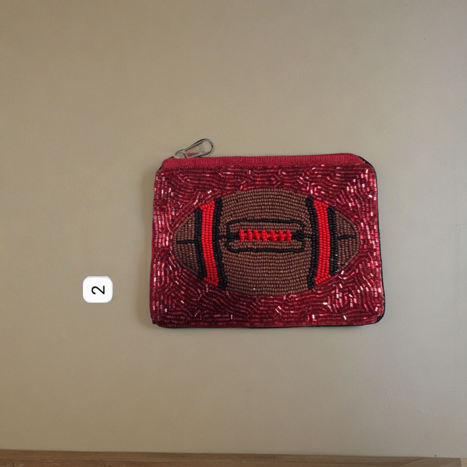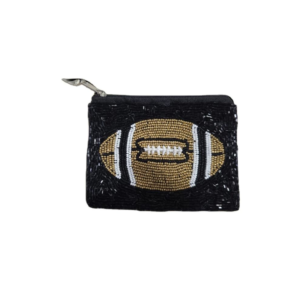 กระเป๋าใส่เหรียญแนววินเทจสไตล์ชนเผ่าสำหรับผู้หญิงกระเป๋าแบบมีซิปประดับลูกปัดฟุตบอลงานแฮนด์เมดขนาดเล็กลายกีฬาที่เก็บเกมปักเลื่อมคุณภาพสูงสำหรับวัน