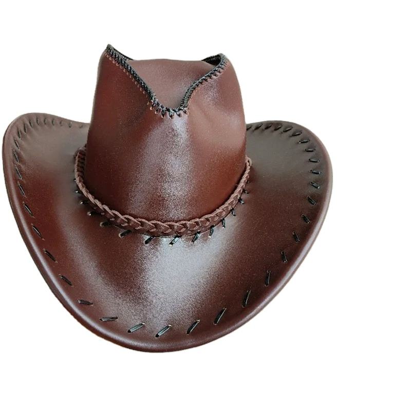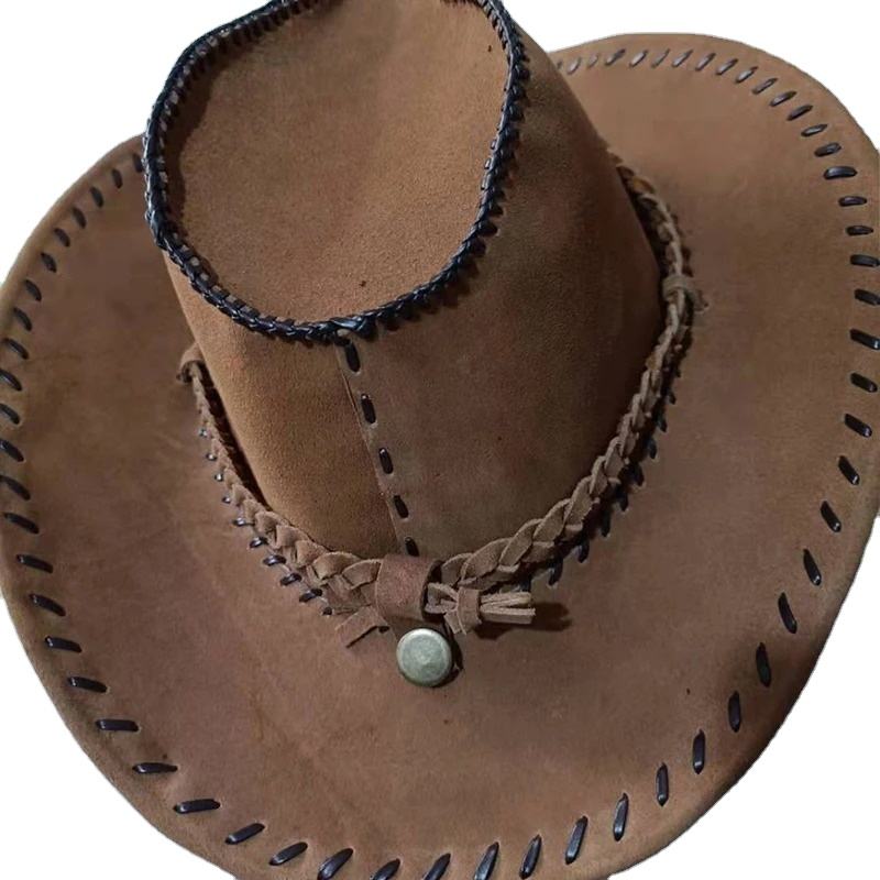 หมวกคาวบอยหนังวัวชั้นหนึ่งสไตล์ชนเผ่าวินเทจหมวกอัศวินสำหรับเดินทางแบบลำลองของผู้หญิงผู้ชาย