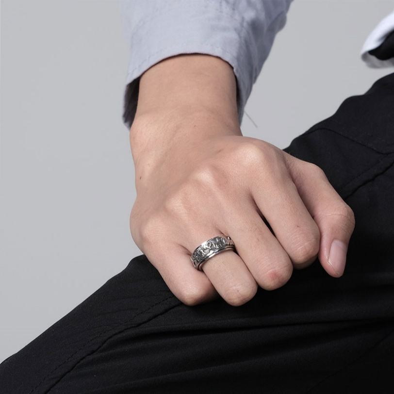 แหวนผู้ชายชุบทอง 14k 18k วินเทจ ทนทาน ราคาแพง ลายสัญลักษณ์อียิปต์โบราณ แหวนหมุนได้ วัสดุสแตนเลส