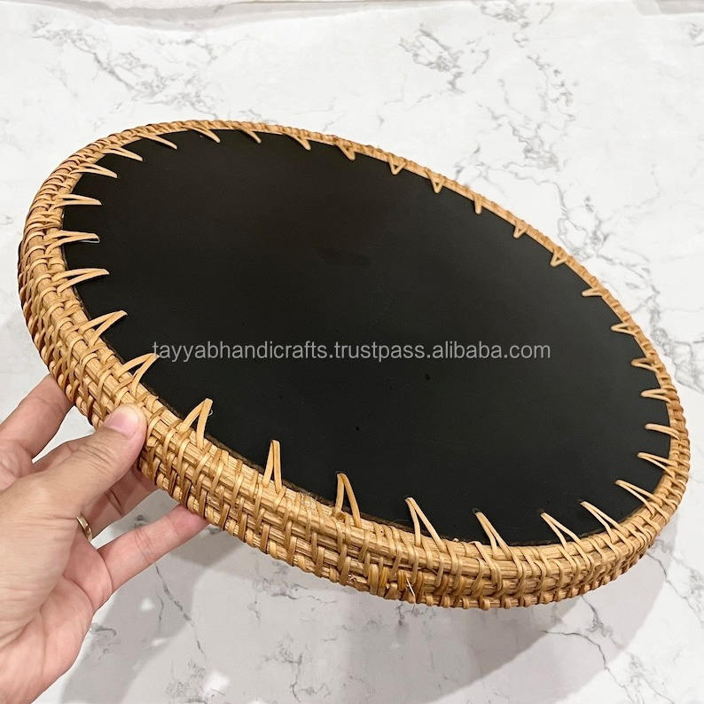 ถาดเสิร์ฟกาแฟอาหารสำหรับครอบครัวสไตล์วินเทจพร้อมหูจับโลหะถาดใส่เครื่องประดับถาดแยกไม้