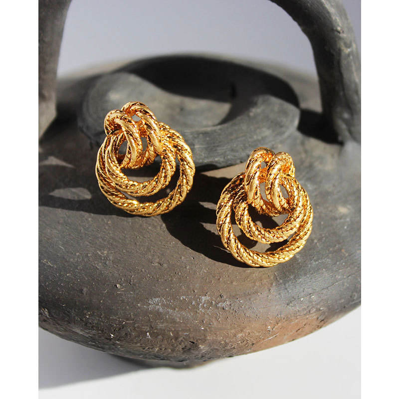 แฟชั่นวินเทจทำจากทองเหลืองชุบด้วยไฟฟ้า18K ต่างหูห่วงหลังปลอกทองสำหรับเครื่องประดับผู้หญิงของขวัญที่ปรับแต่งได้