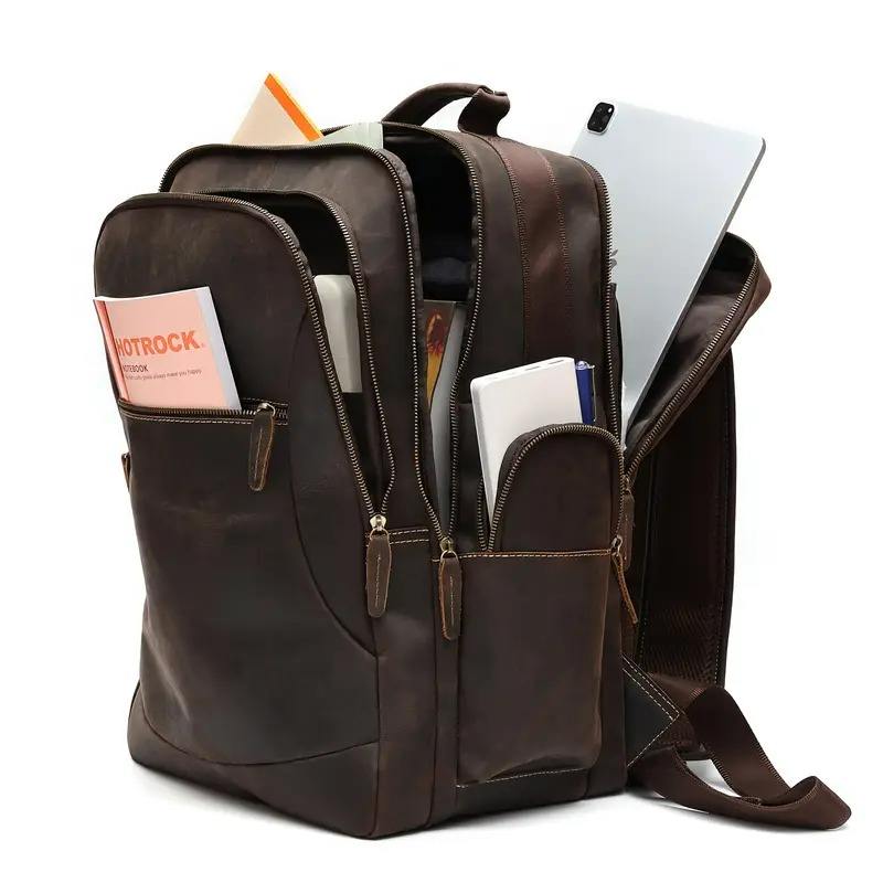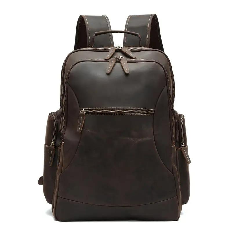 กระเป๋าเป้สะพายหลังเดินทางหนังแท้แฟชั่นวินเทจความจุขนาดใหญ่ทนทานมีซิปสำหรับผู้ชายผู้หญิงธุรกิจผจญภัย