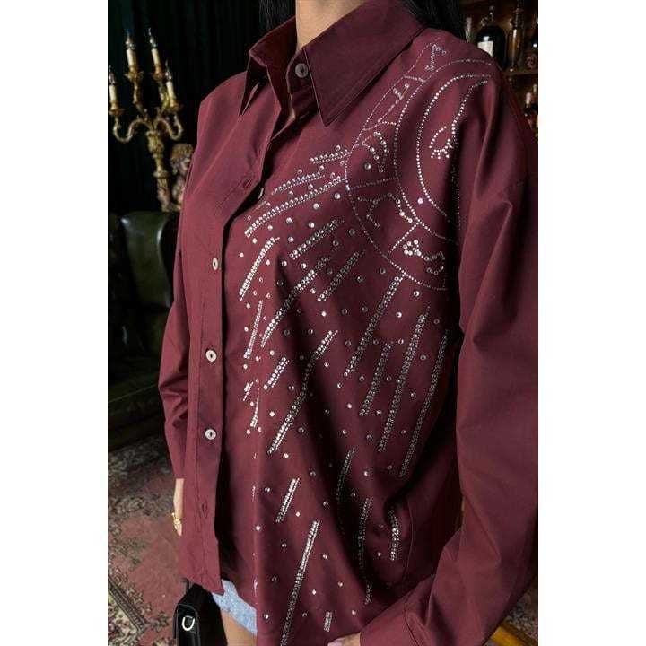 เสื้อเชิ้ตผ้าป๊อปลินแฟชั่นวินเทจ 3440 ประดับด้วยลายหินรูปพระจันทร์
