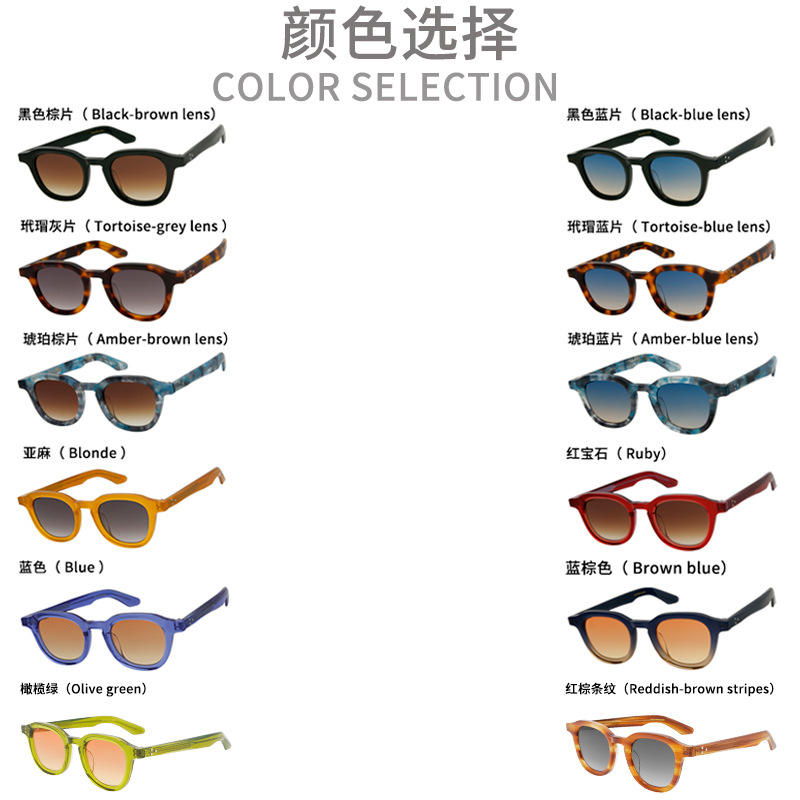 แว่นกันแดดทรงกลมกรอบอะซิเตทสีเขียวโพลาไรซ์ รุ่นวินเทจแฟชั่นริเวท MOOHE ยูนิเซ็กส์ ป้องกันรังสียูวี 400 น้ำหนักเบา ทนทาน