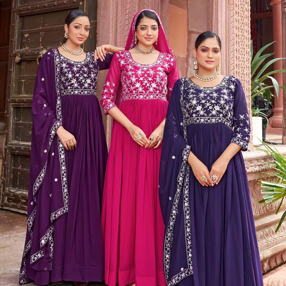 ชุดเดรสยาวสไตล์วินเทจ แห้งเร็ว สำหรับงานปาร์ตี้ ผ้าจอร์เจตต์ลายดอกไม้ ปักด้วยดิ้นและเลื่อม