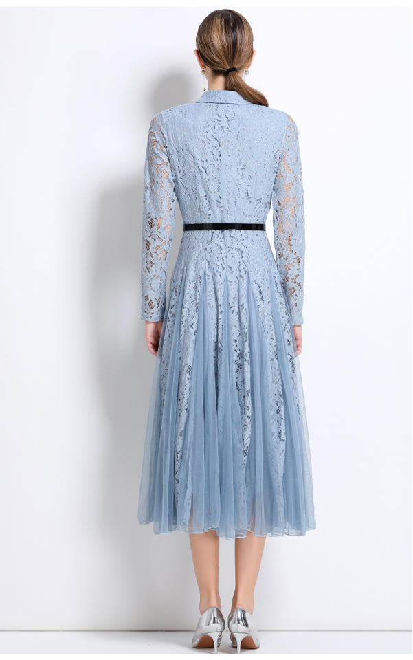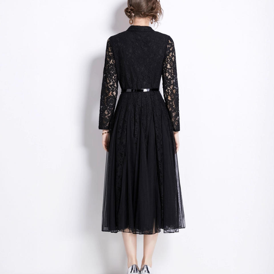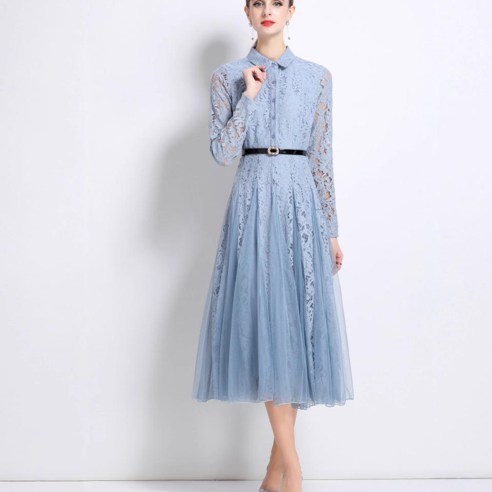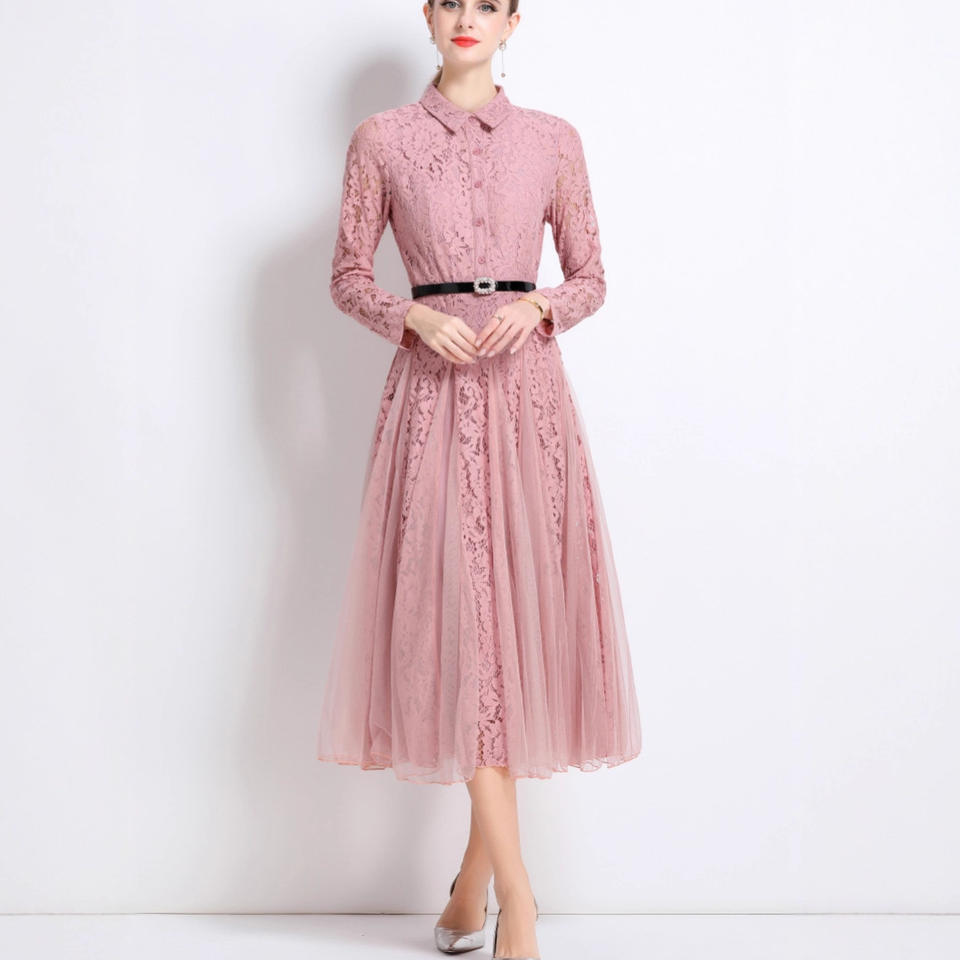 ชุดเดรสคลุมเข่าลูกไม้สไตล์วินเทจปักลายดอกไม้สไตล์ใหม่สำหรับผู้หญิงกระโปรงบานใหญ่เหนือเข่า