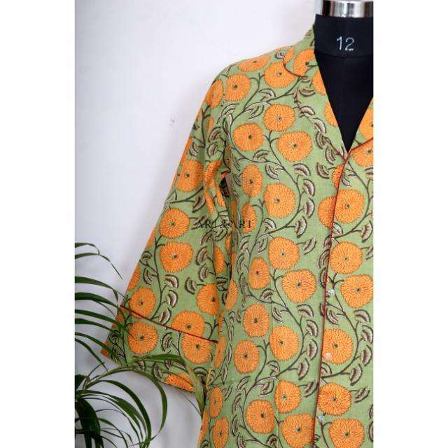 เดรสยาวผ้าฝ้ายพิมพ์ลายดอกไม้สไตล์วินเทจ เป็นมิตรกับสิ่งแวดล้อม สไตล์ฮิปฮอป ลายพิมพ์ใหม่ เสื้อเชิ้ตคอวีติดกระดุม ปรับได้