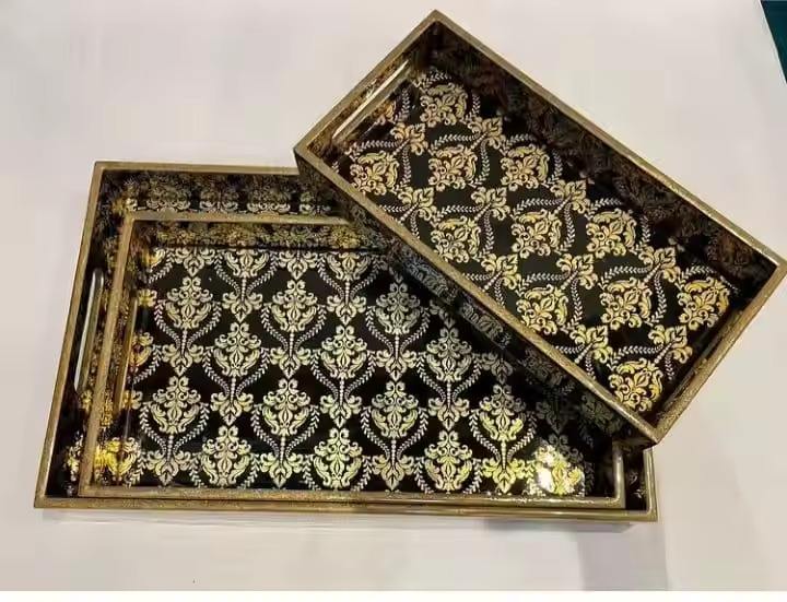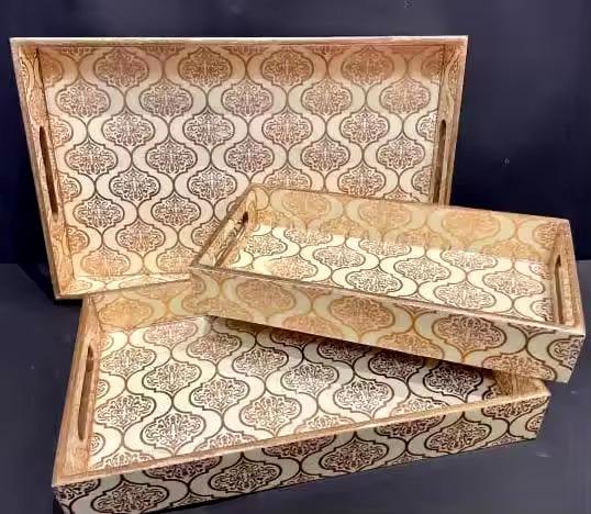 ถาดไม้เคลือบพิมพ์ลายดอกไม้สไตล์วินเทจหรูหราขนาดใหญ่สำหรับเสิร์ฟในห้องครัวหรือที่บ้าน