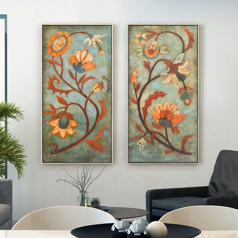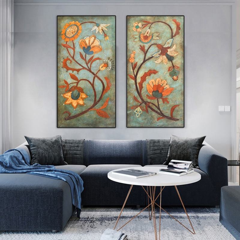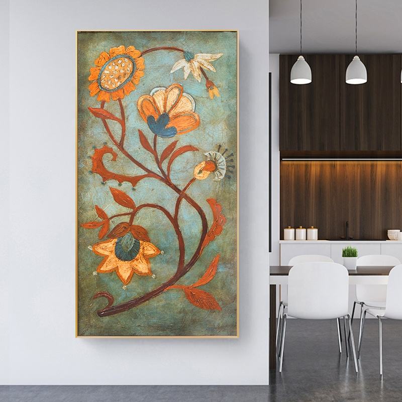 ภาพวาดดอกไม้สไตล์วินเทจ ภาพตกแต่งผนัง งานศิลปะบนผ้าใบสำหรับตกแต่งบ้าน พร้อมกรอบลอย