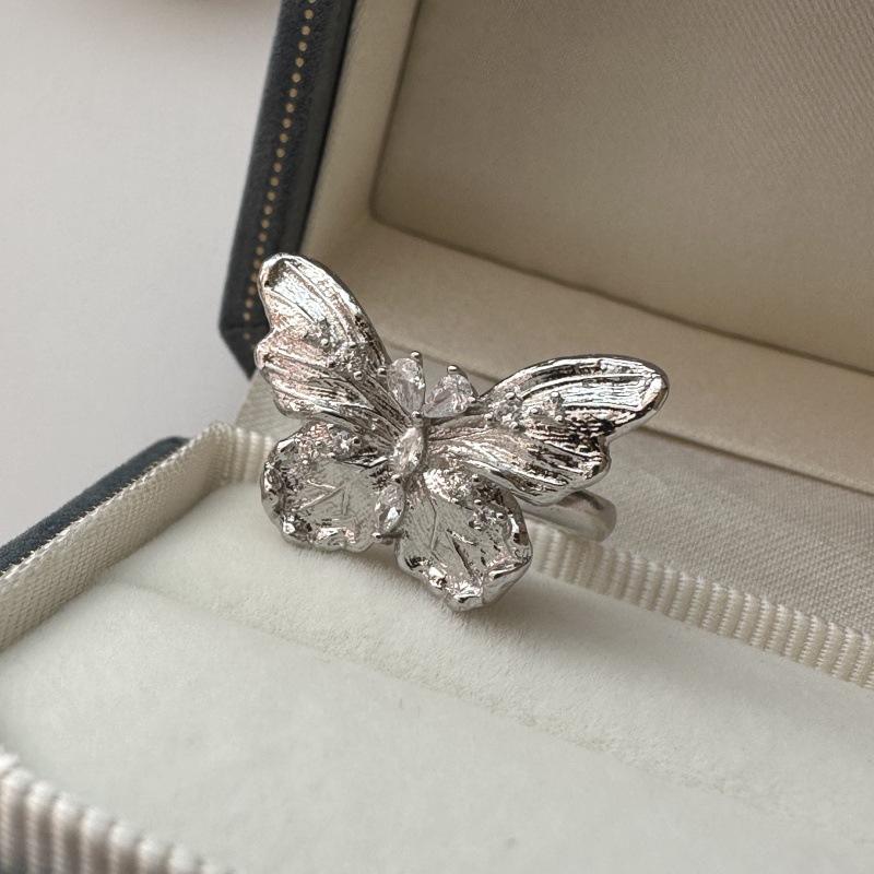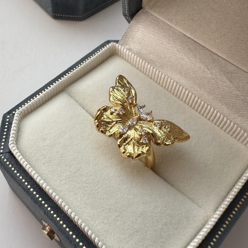 แหวนเงินแท้ S925 ประดับเพชรซิคอน ดีไซน์วินเทจ ฝรั่งเศส ย้อนยุค โรแมนติก สง่างาม หรูหรา สไตล์ยุคกลาง ประดับลายผีเสื้อ