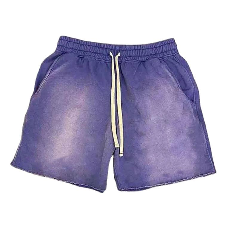 กางเกงขาสั้นผู้ชายสไตล์วินเทจผ้าเฟรนช์เทอร์รี่ เอวยางยืดแบบสั่งทำ ขอบดิบ กระเป๋าตาข่าย 100% ป้องกันรอยยับ ระบายอากาศได้ดี กันน้ำ
