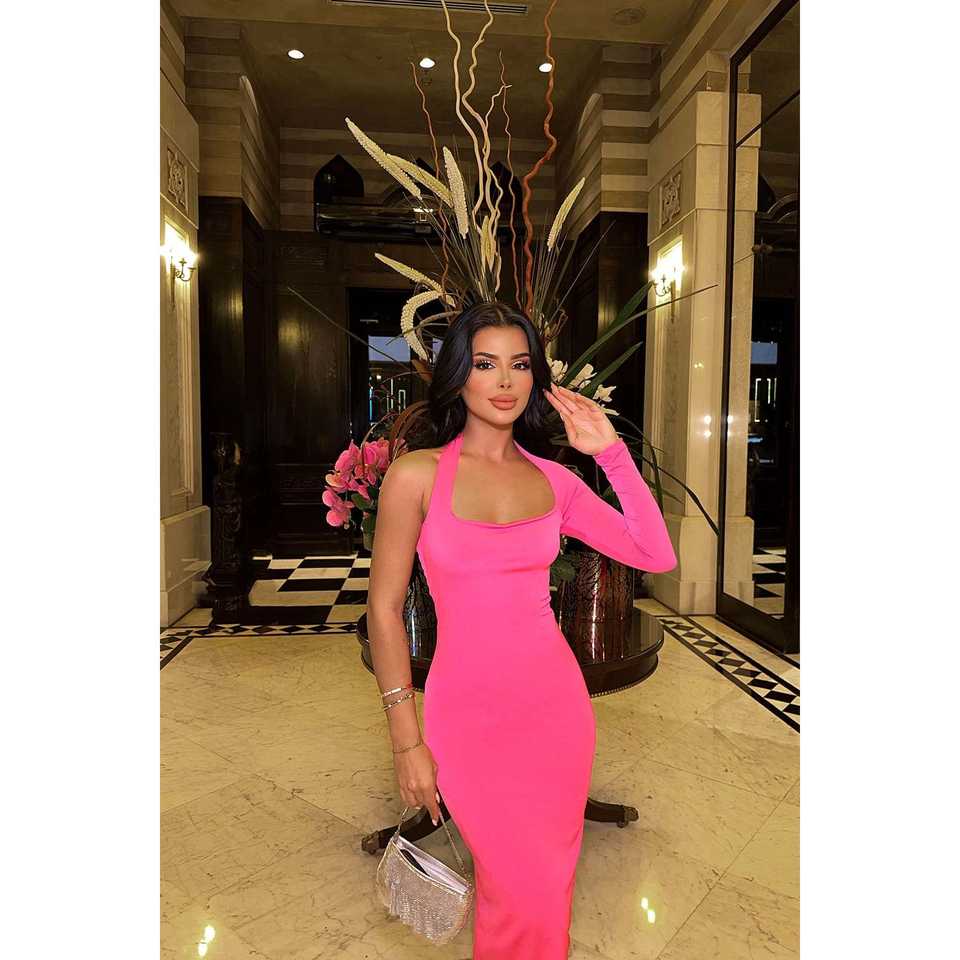 เดรสยาวสีชมพูฟูเชียแบบวินเทจ แขนเดียว ไซส์ XS ผ้าโพลีเอสเตอร์ ประดับกลิตเตอร์ เลื่อม ลูกปัด คอรูปหัวใจ เรียบง่าย สำหรับงานปาร์ตี้ ดีไซน์หรูหรา ด้านหลังมีรายละเอียด