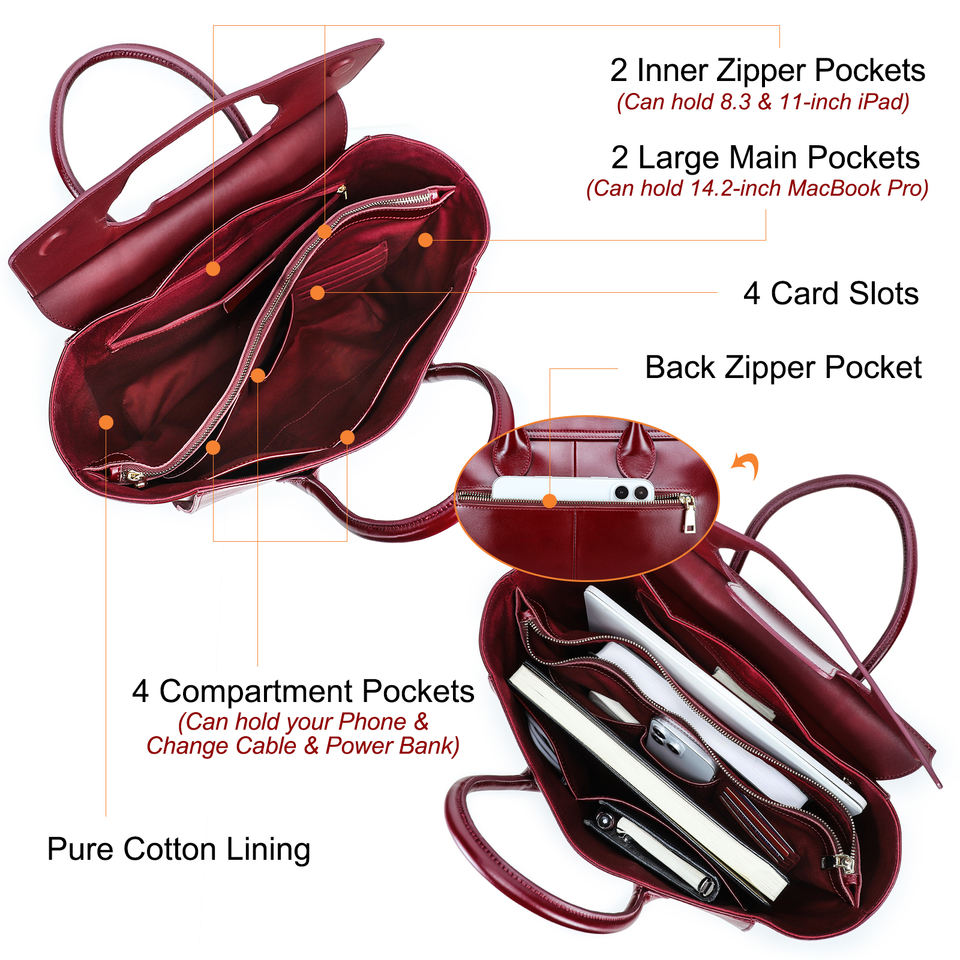 กระเป๋าใส่แล็ปท็อปหนังแท้สไตล์วินเทจสำหรับผู้หญิง ขนาด 13.3" 14.2" สำหรับ Macbook กระเป๋าถือแบบหลายช่องสำหรับใช้ในชีวิตประจำวันและทำงาน