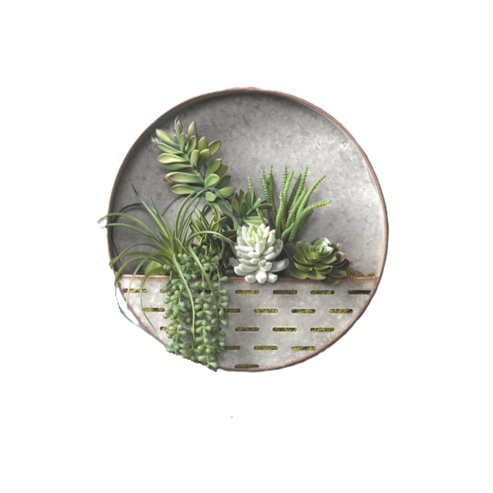 กระถางแขวนผนังโลหะชุบสังกะสีแบบวินเทจ ทรงกลม สำหรับปลูกสมุนไพรและดอกไม้ ใช้ได้ทั้งภายในและภายนอกอาคาร ติดผนังสำหรับสวน