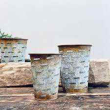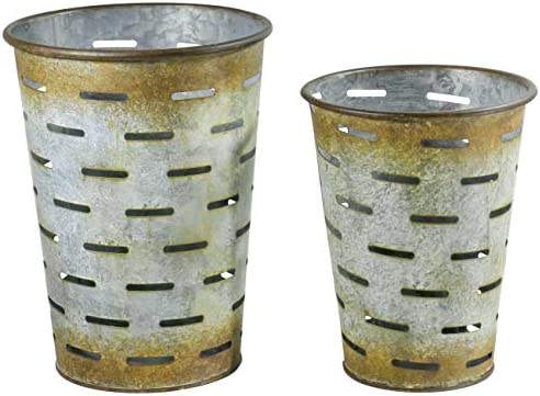 ชุดกระถางต้นไม้ทำจากโลหะเคลือบสังกะสีสไตล์วินเทจ2ชิ้นดีไซน์ทันสมัยทนทานสำหรับใช้ในบ้านและสวน